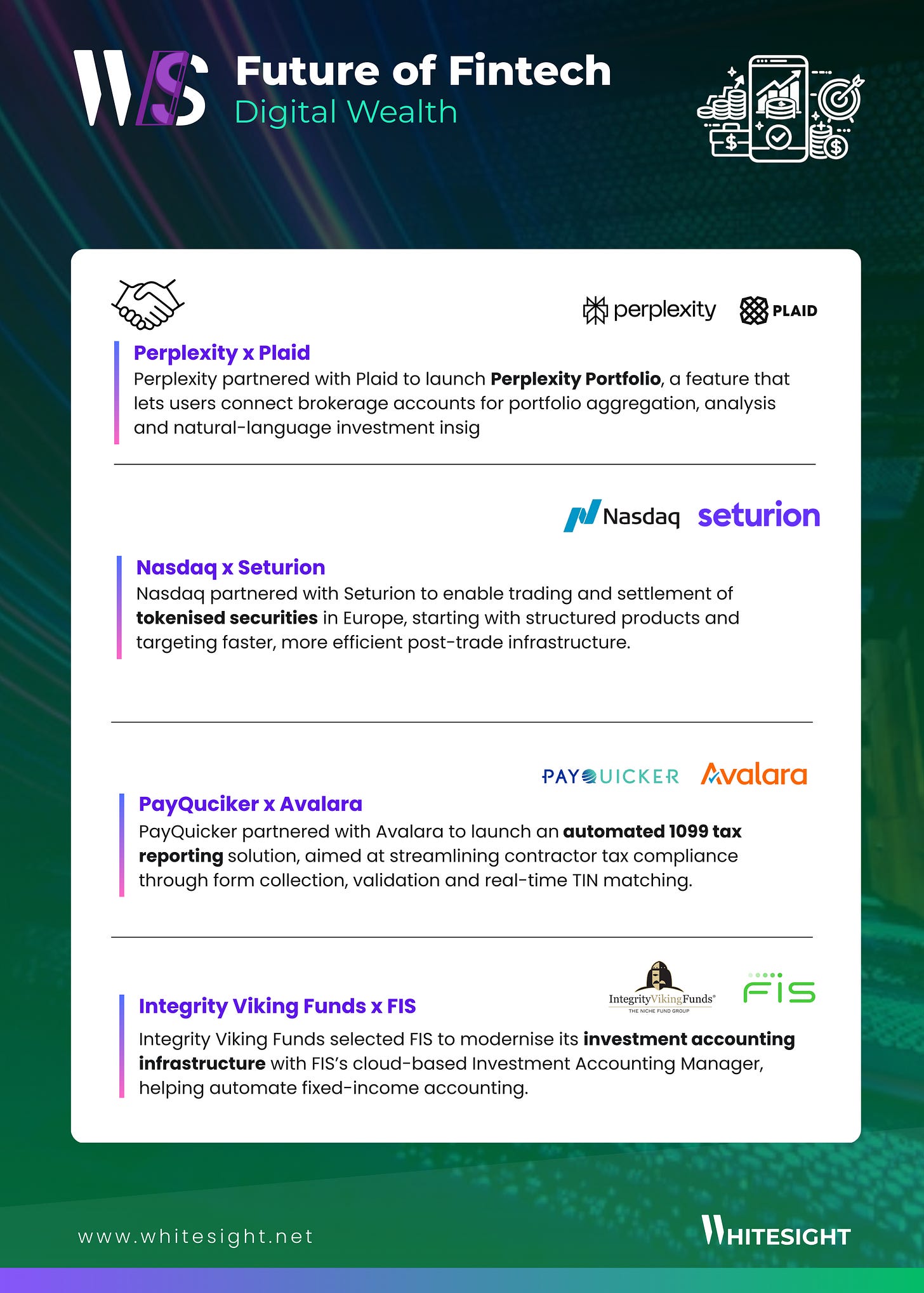Got something cool brewing in fintech? We’d love to feature you next- drop us a note at hello@whitesight.net 👋