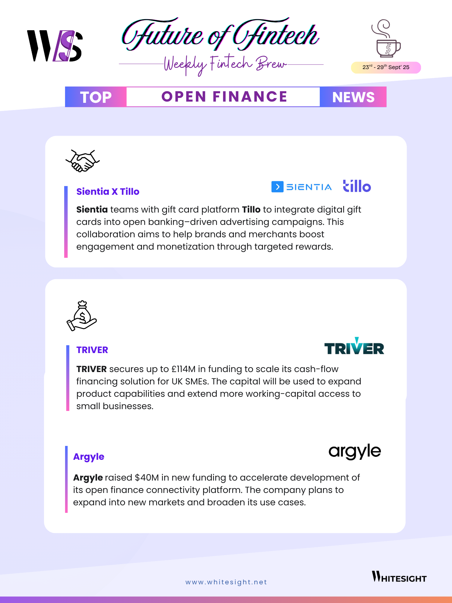 TRIVER secured up to £114 million in funding to expand its AI-driven cash-flow finance platform. The company will use Open Banking data to provide UK SMEs with faster and more flexible invoice financing.