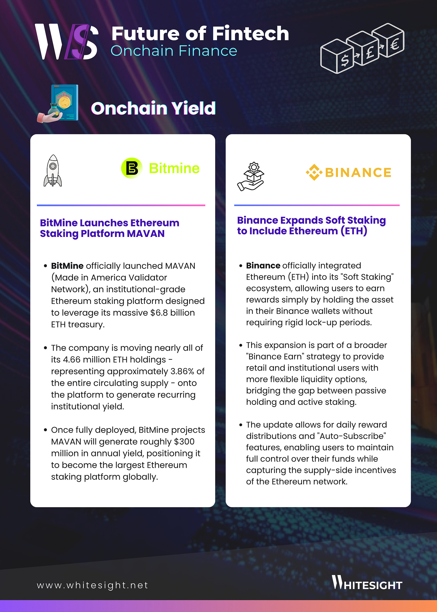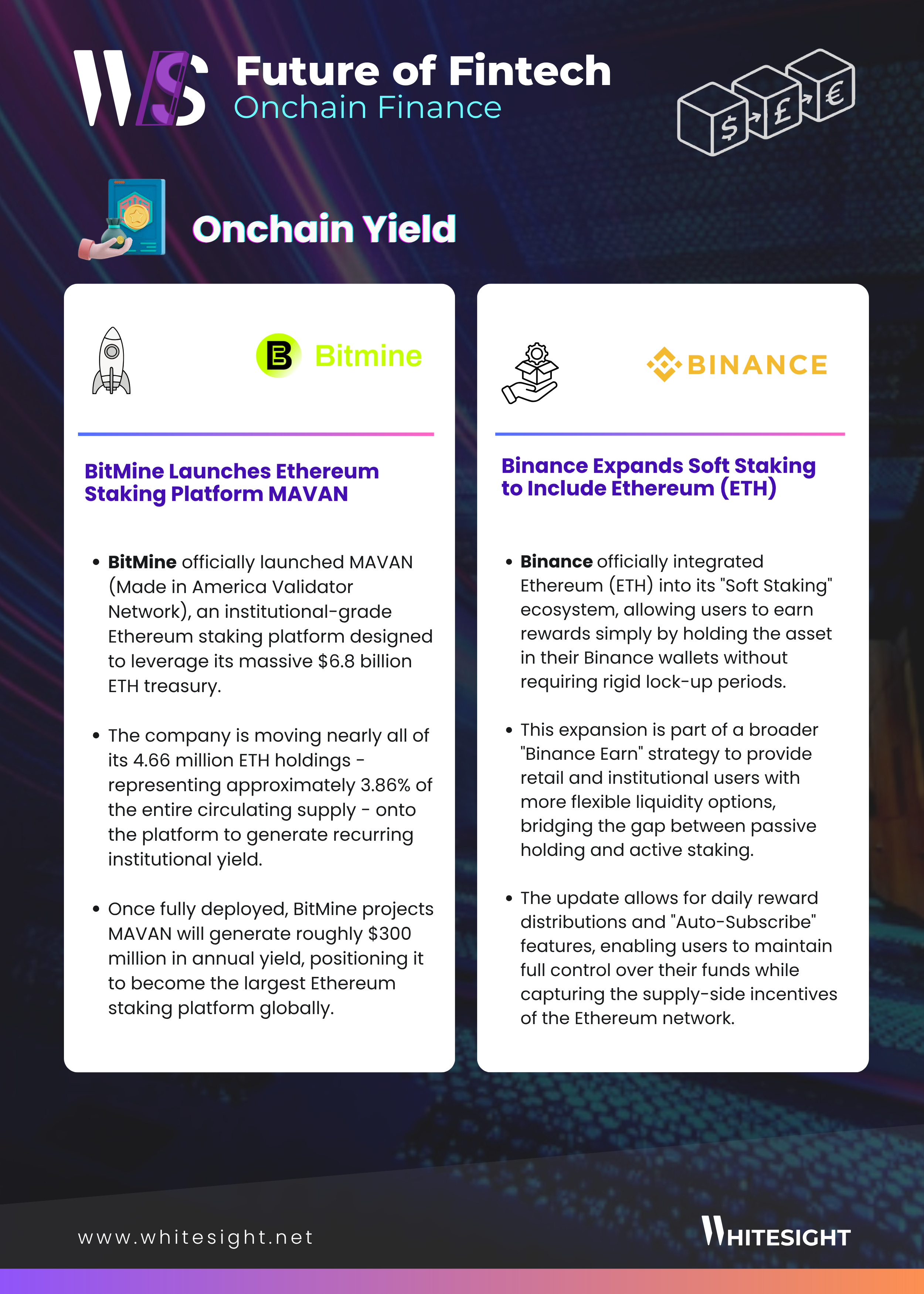 The News: BitMine launched MAVAN, its Ethereum staking platform, with ambitions to generate up to $300 million in annual yield. The product turns staking into a larger-scale institutional yield business.